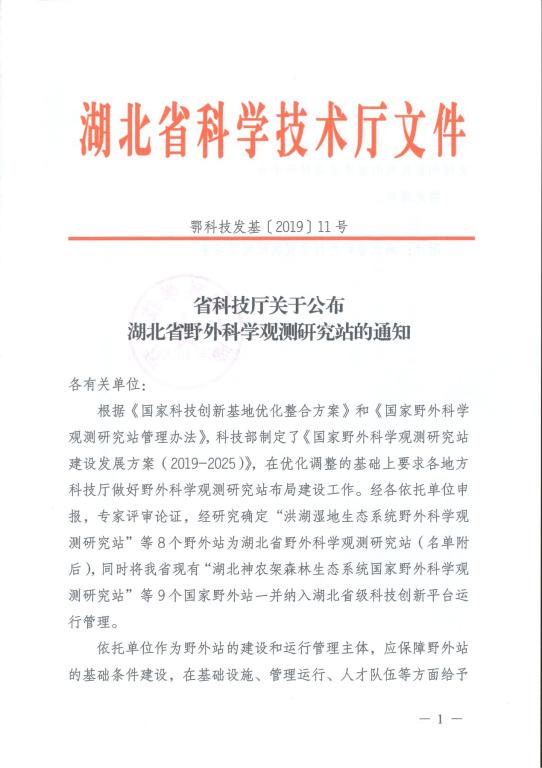 近日,湖北省科技廳公布了《省科技廳關(guān)于公布湖北省野外科學(xué)觀測(cè)研究站的通知》(鄂科技發(fā)基[2019]11號(hào)),由我校聯(lián)合湖北工業(yè)大學(xué)大學(xué)、中國(guó)長(zhǎng)江三峽集團(tuán)有限公司申報(bào)的“三峽水庫(kù)生態(tài)系統(tǒng)湖北省野外科學(xué)觀測(cè)研究站(以下簡(jiǎn)稱“三峽生態(tài)站”)”獲批立項(xiàng)建設(shè),我校是此次入圍的8家依托單位中的唯一省屬高校。
